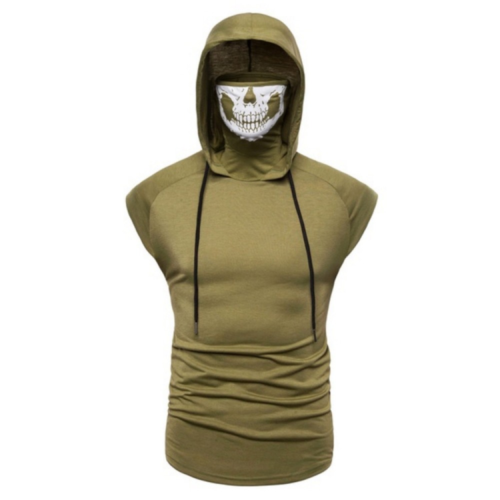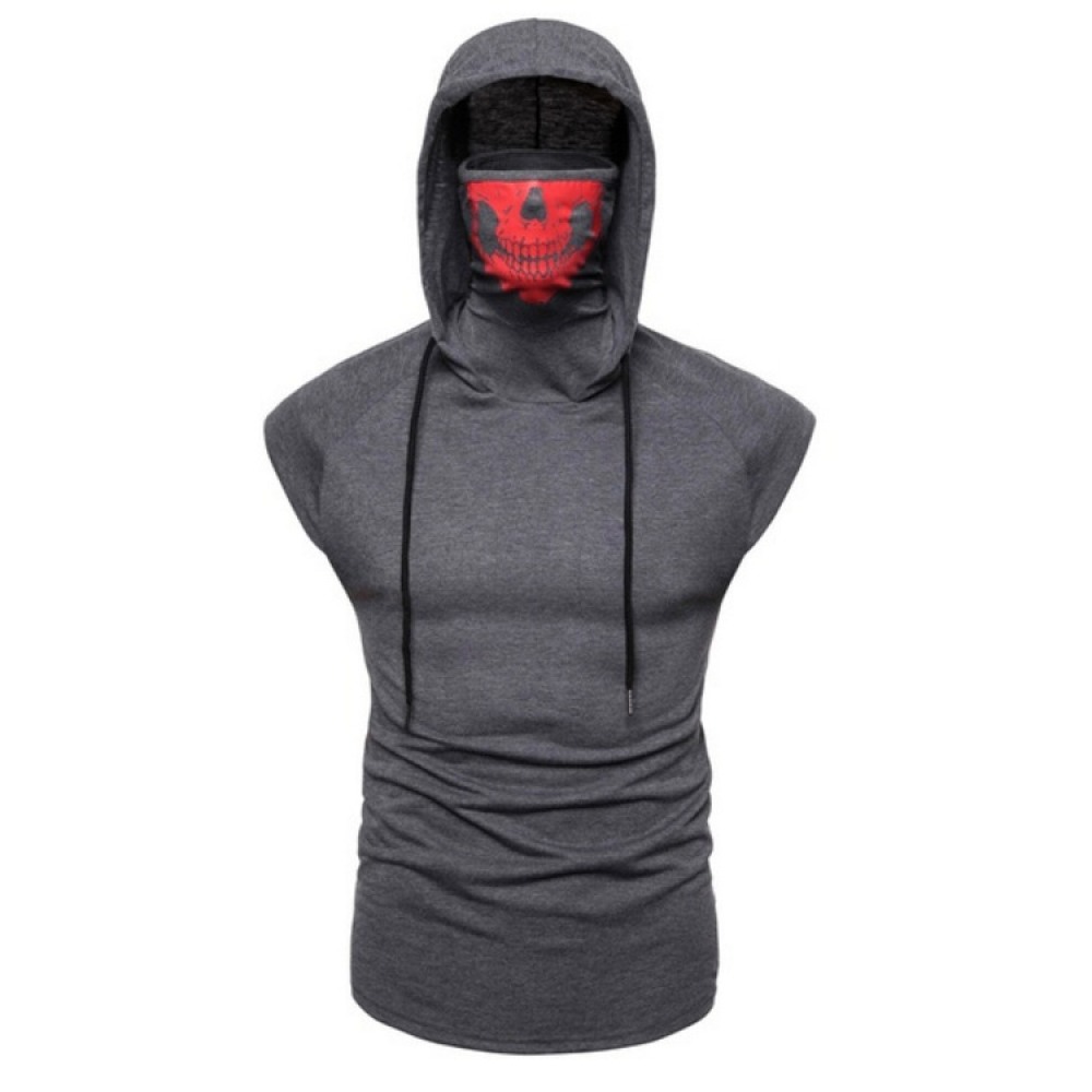 Male Skull Vest Plus Size T-Shirt Plus Size Hooded Masked Fashion Sleeveless T-Shirt