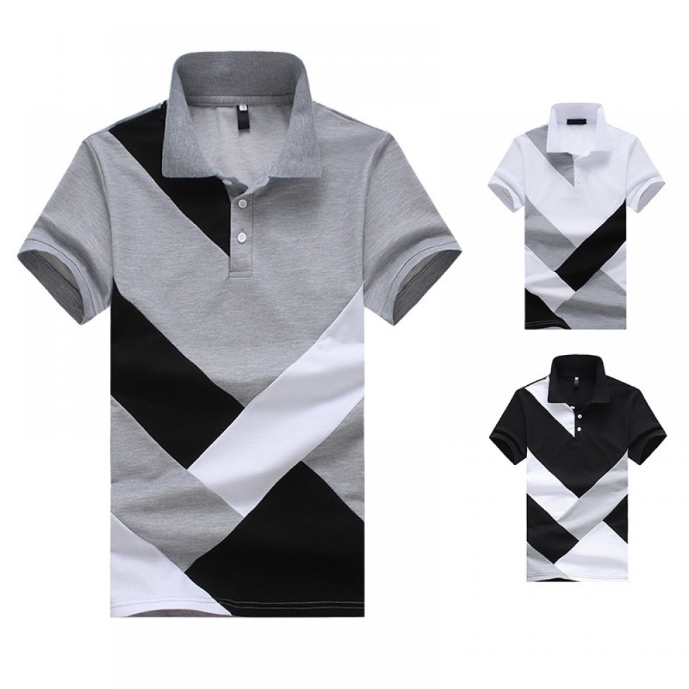 Summer New Men's Personality Hit Color Lapel Short-Sleeved T-Shirt