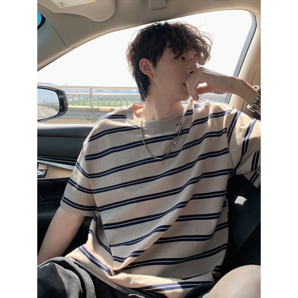 New Summer Men's Hooded Striped Lapel T-Shirt Mens Lapel Short-Sleeved Hair
