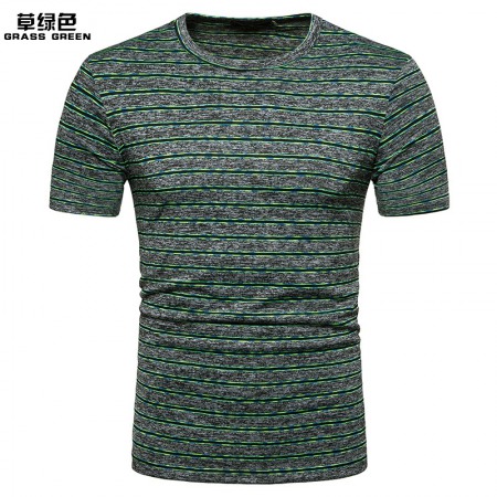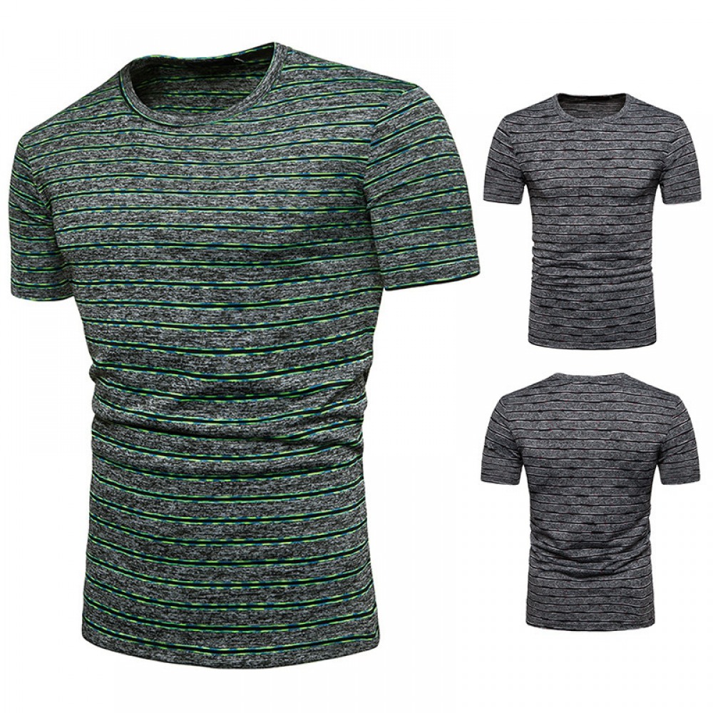 New Summer Men's Short-Sleeved T-Shirt Mens Contrast Striped Slim Casual T-Shirts