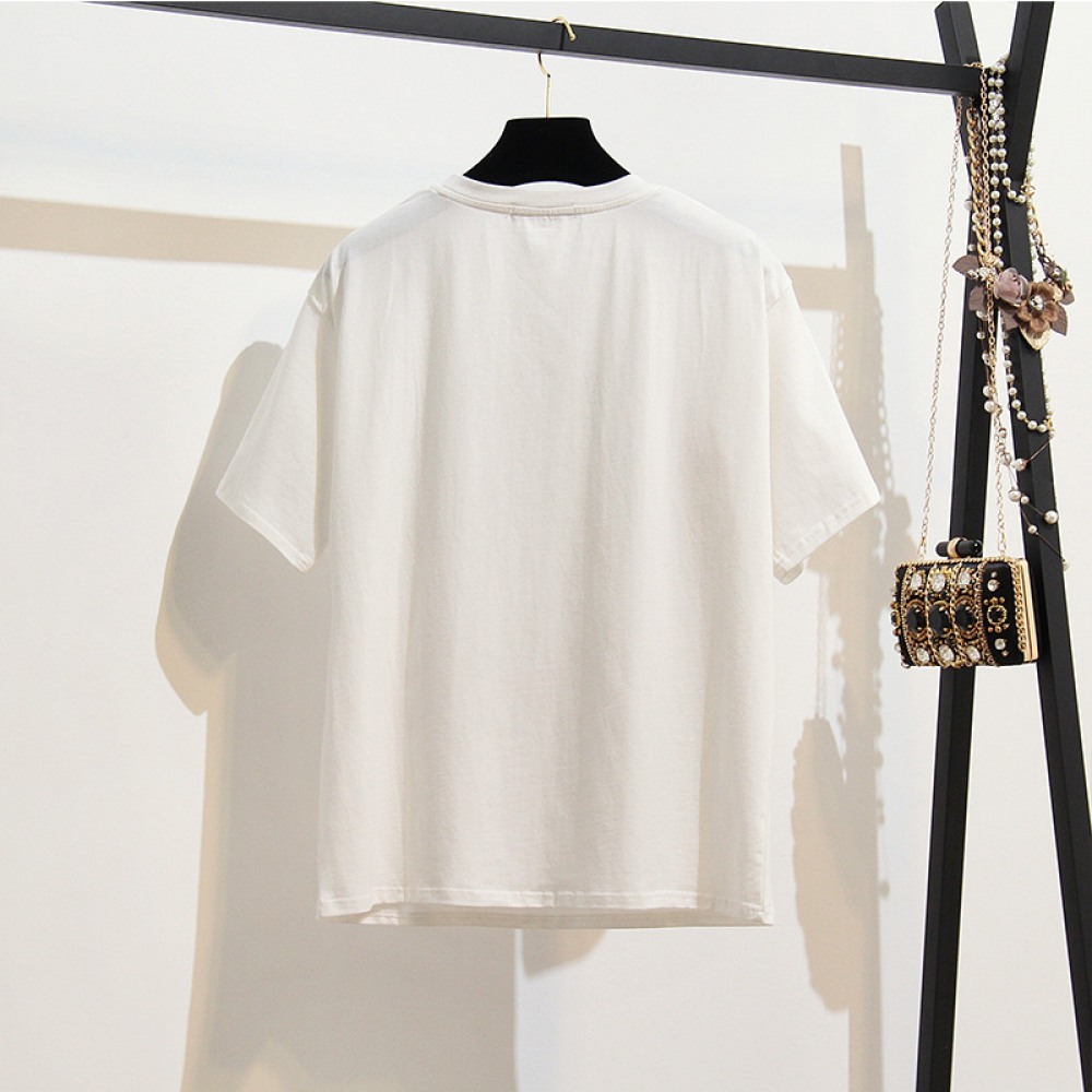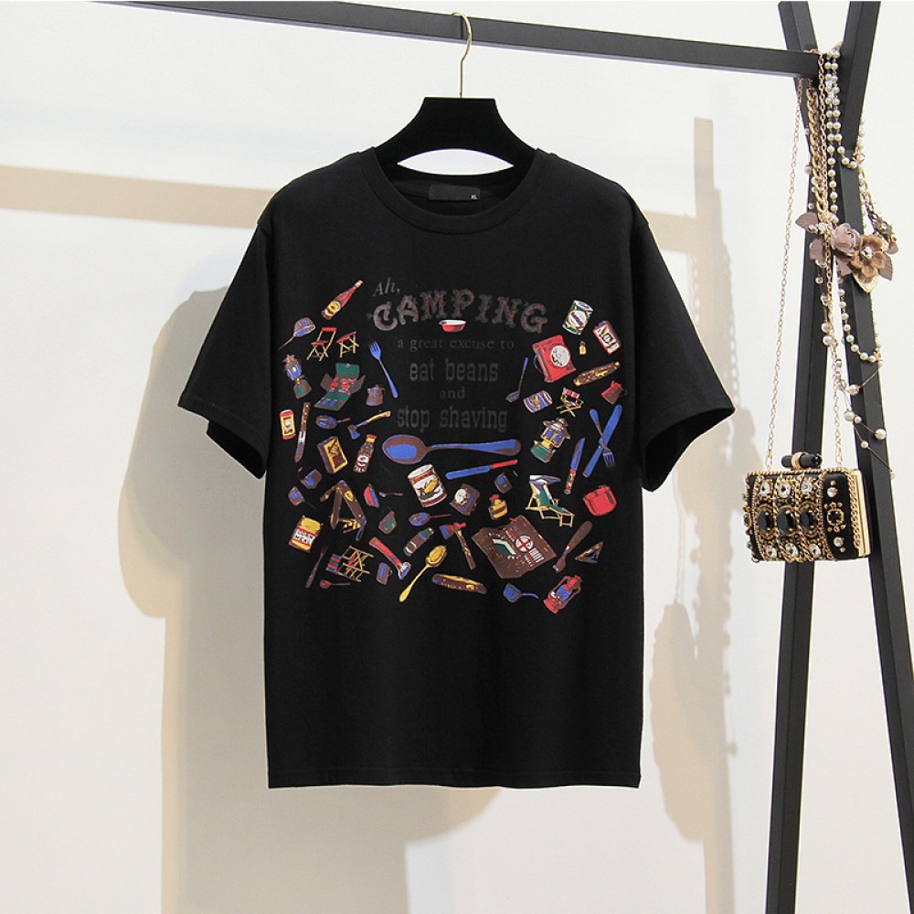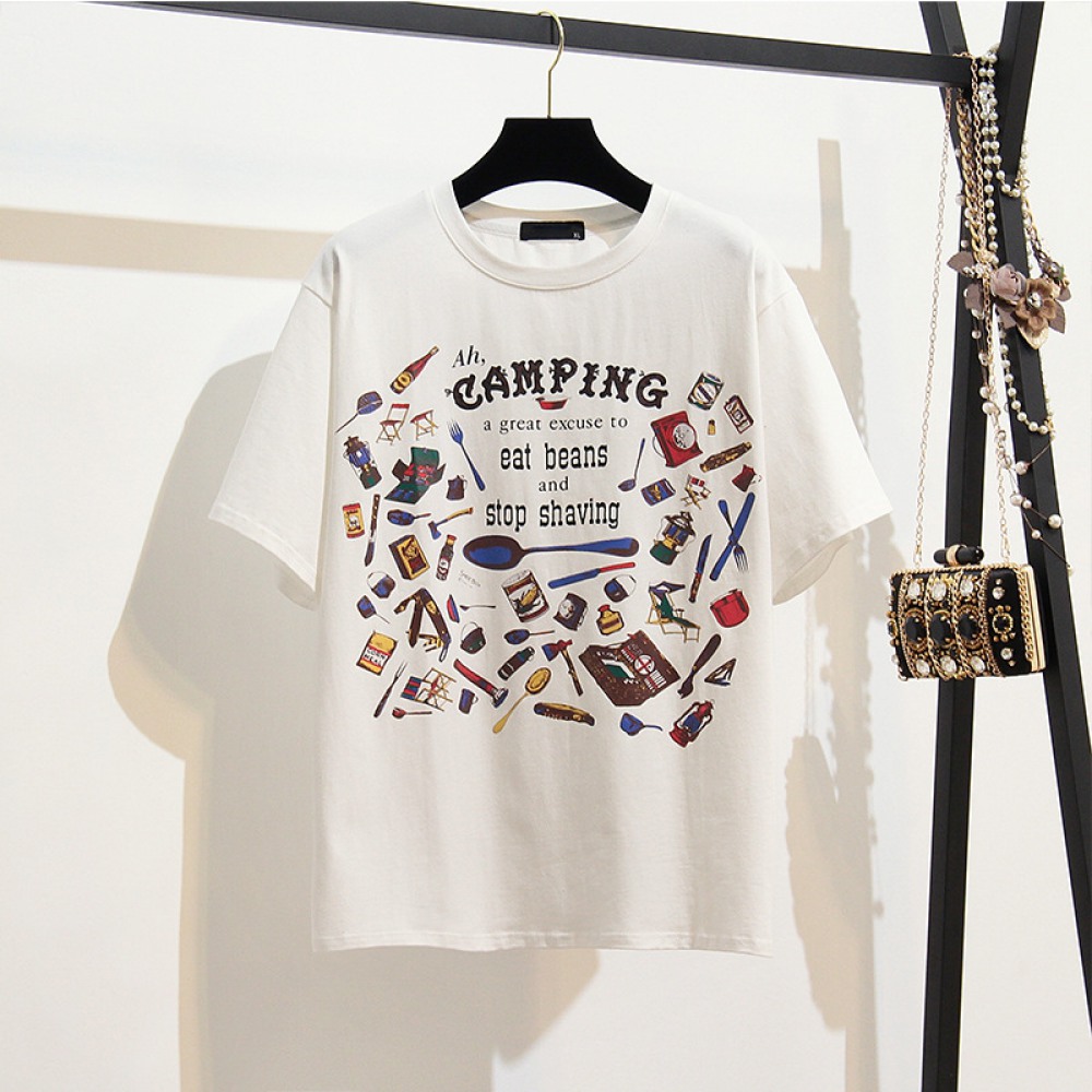 Plus Size Women's Summer Clothes Fat Print Short-Sleeved T-Shirt Female