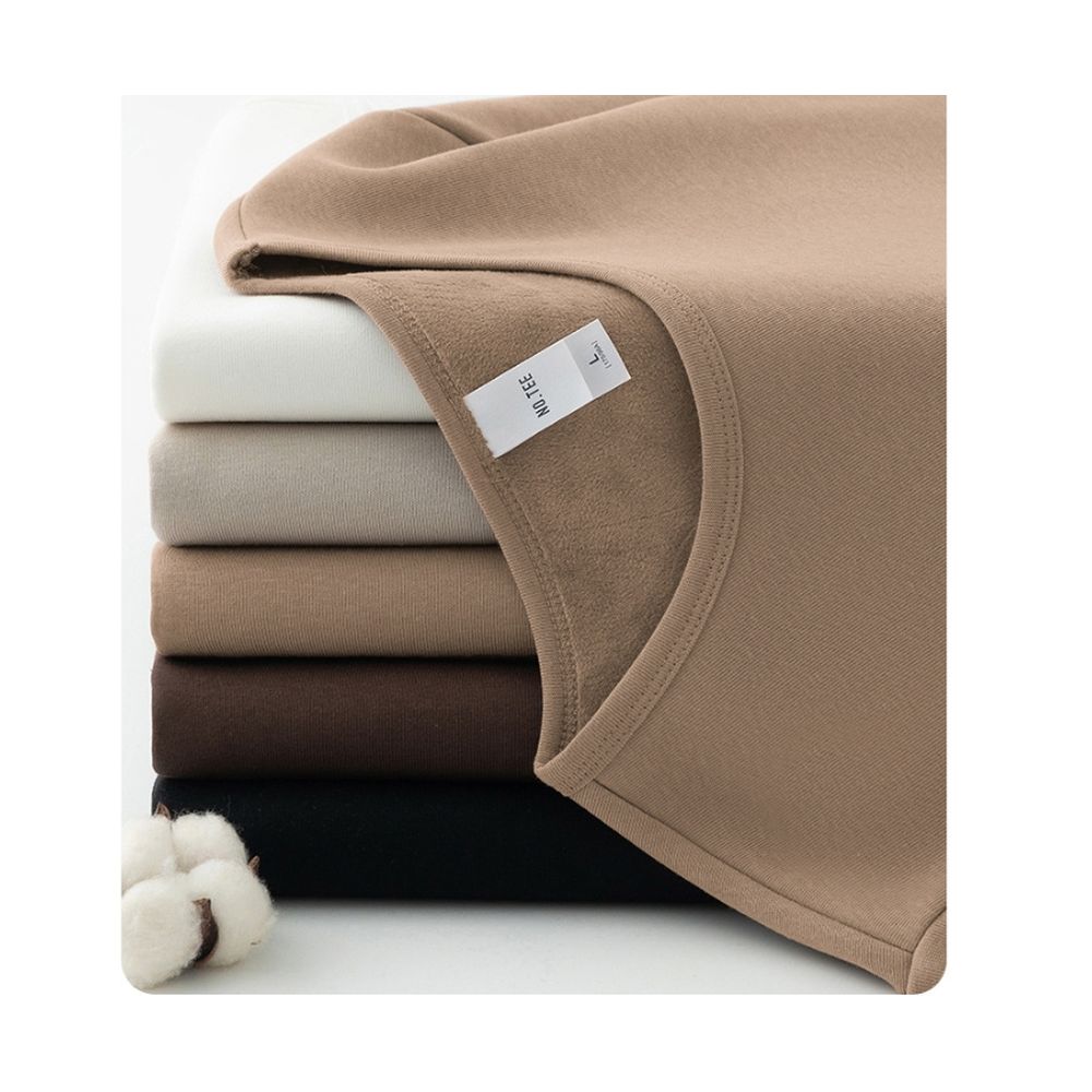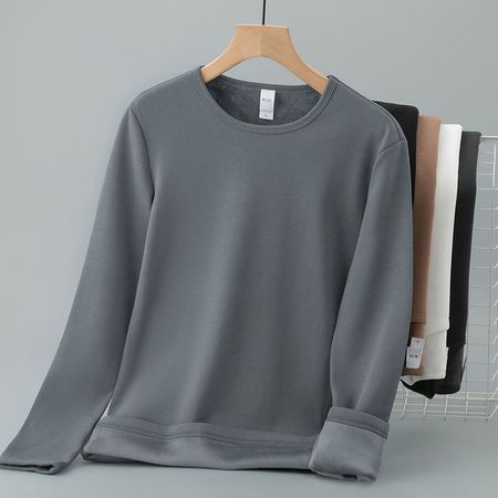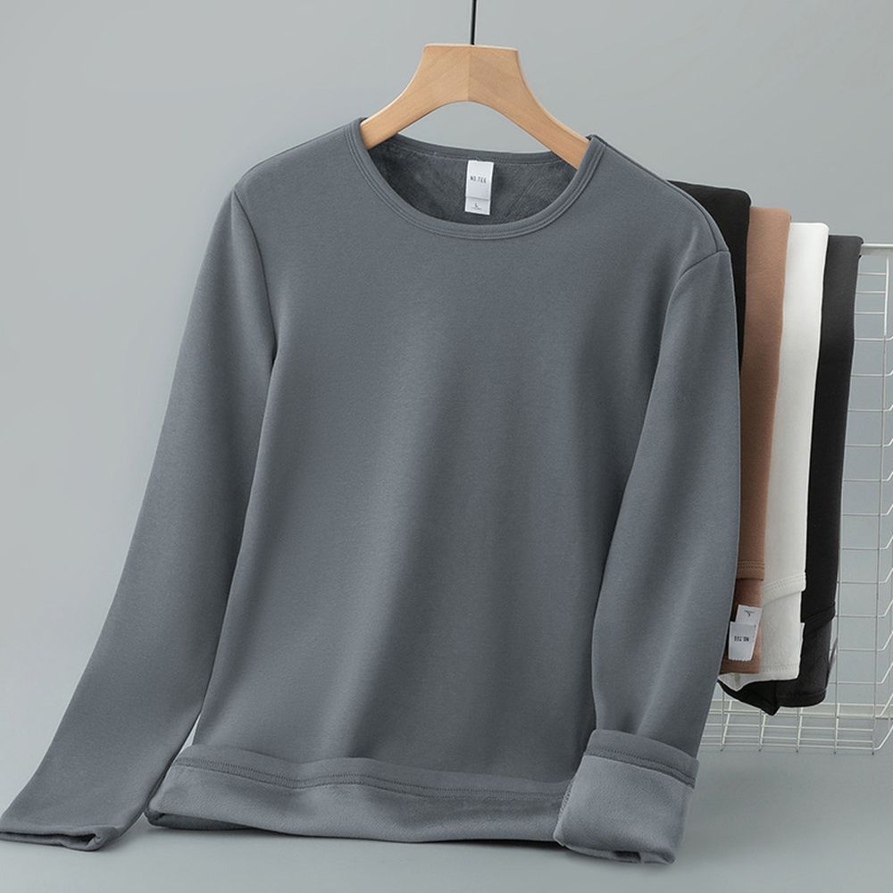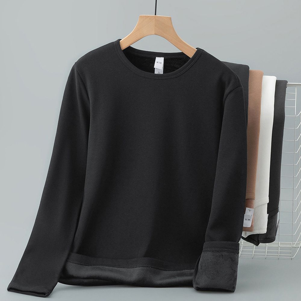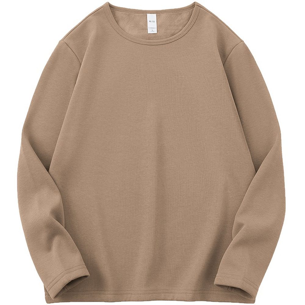 Round Neck Long-Sleeved T-Shirt Men's Trendy Inner Wear Plus Velvet Thickened Warm Base Layer Solid Color