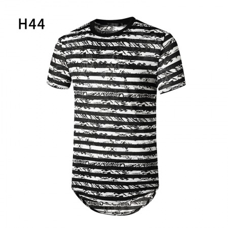 New Summer Men's Short-Sleeved T-Shirt Mens Contrast Striped Slim Casual T-Shirt