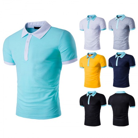 Summer New Men's Personality Hit Color Lapel Short-Sleeved T-Shirt