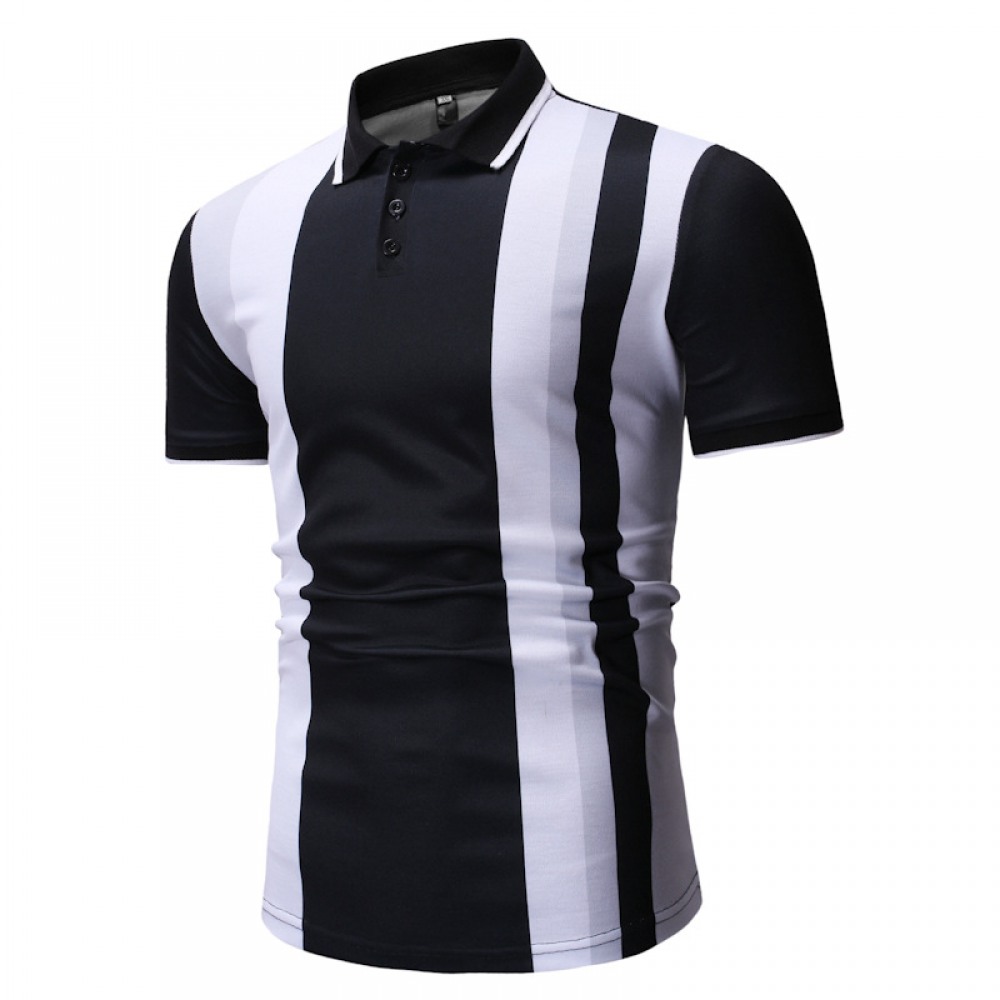 Summer New Slim Men's Lapel Vertical Stripes Printed Short-Sleeved T-Shirt